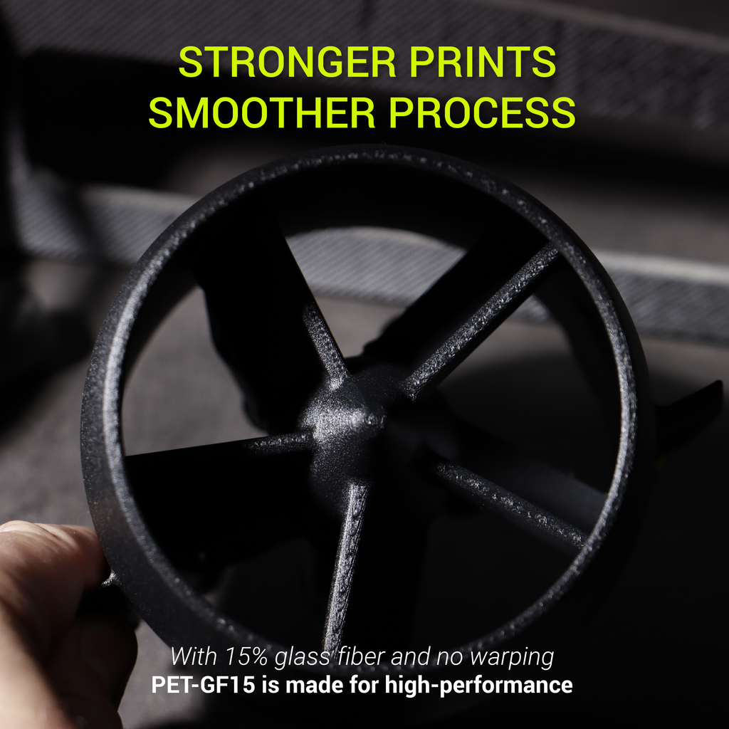 Fiberon™ PET-GF15 combines PET with 15% glass fiber reinforcement to deliver exceptional stiffness, dimensional stability, and thermal resistance. It’s engineered for users who need the toughness of an engineering-grade filament without sacrificing printability.