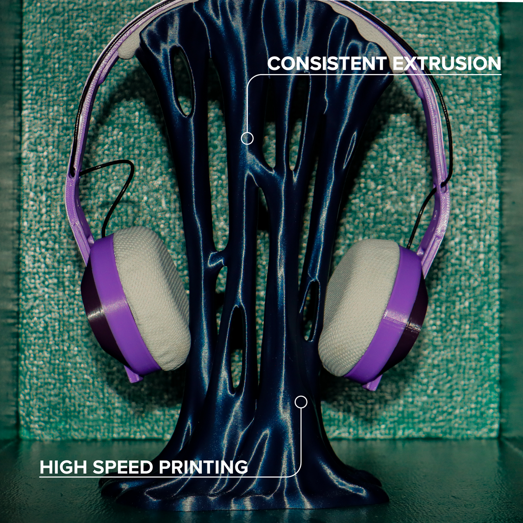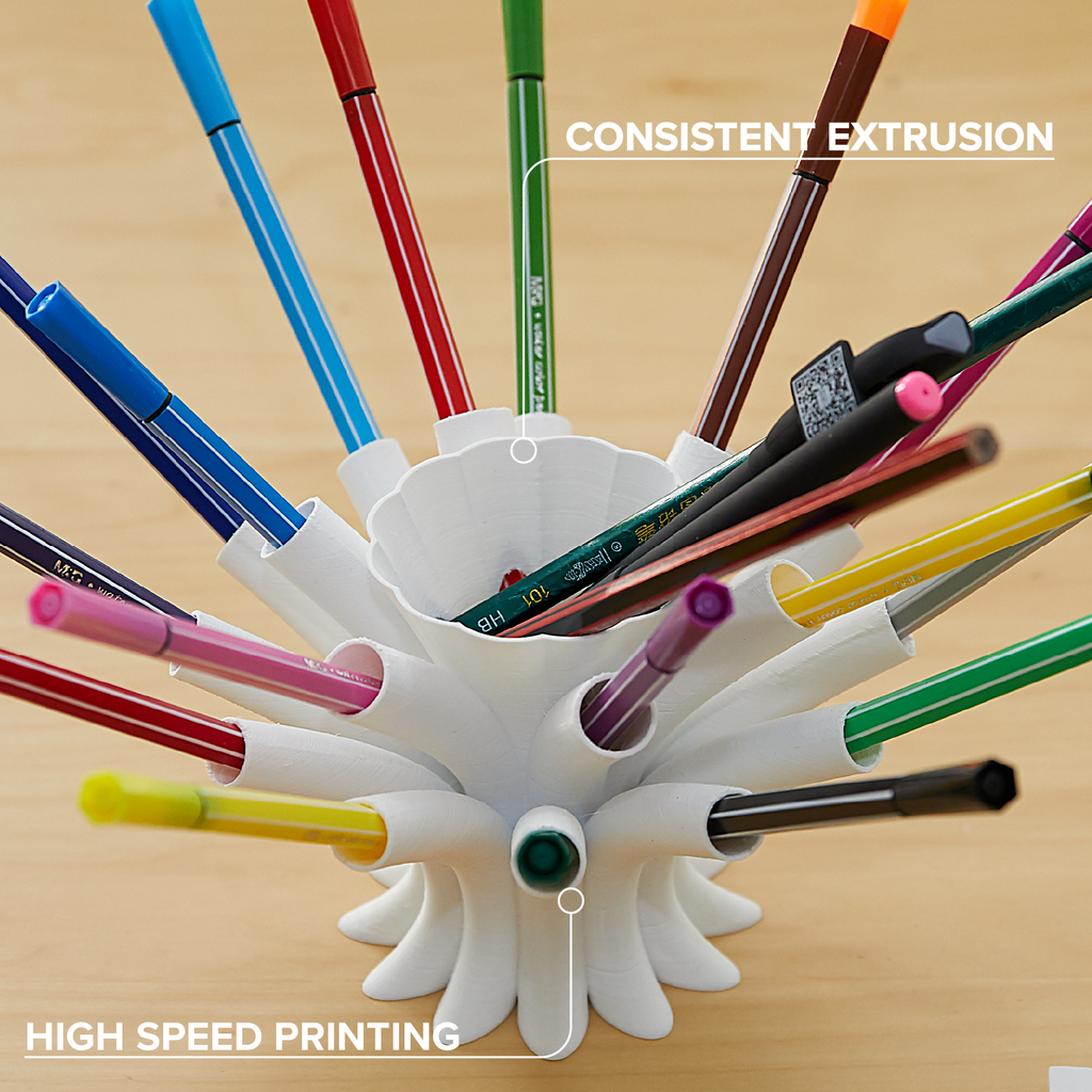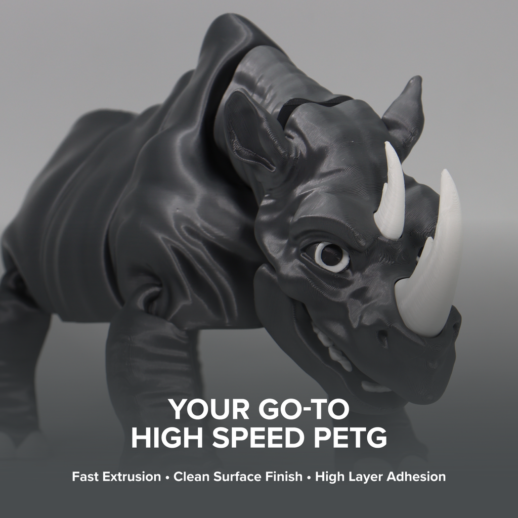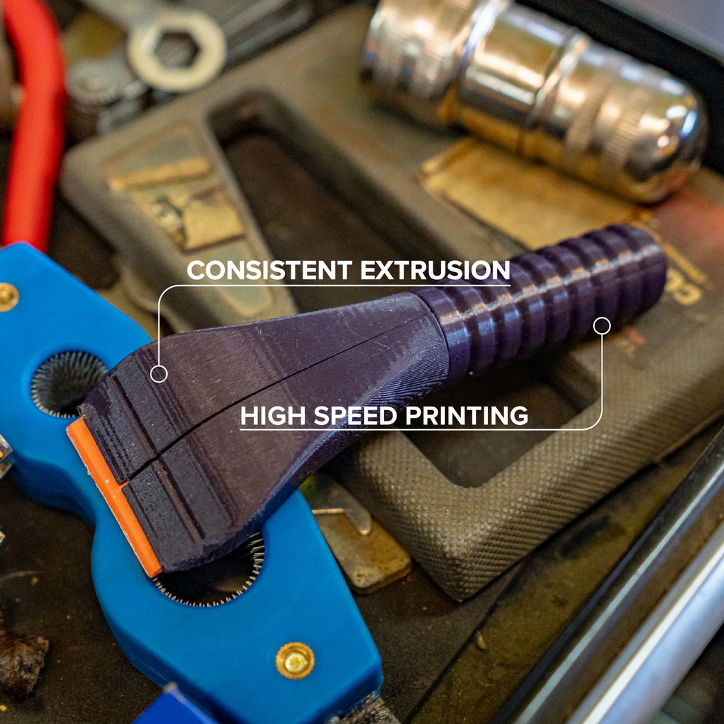 Engineered to print faster without losing strength or quality. Its high-flow formulation enables clean, accurate extrusion at speeds up to 300 mm/s, or over 500mm/s with high-flow nozzles while maintaining excellent layer adhesion, durability and surface finish.